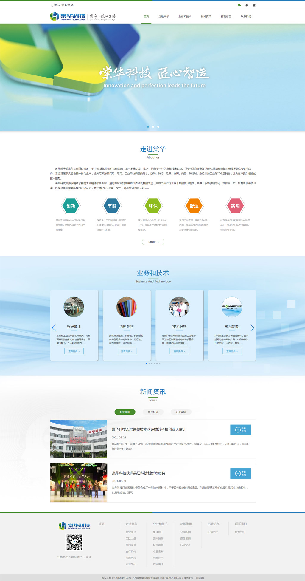 我公司落戶于中國·盛澤紡織科技創(chuàng)業(yè)園,是一家集研發(fā)、生產(chǎn)、銷售于一體的高新技術(shù)企業(yè)。以零污染低能耗的功能性涂層和清潔染色技術(shù)為主要研究方向,常溫常壓下實(shí)現(xiàn)色整一體化生產(chǎn),業(yè)務(wù)范圍涉及民用、軍用、工業(yè)用紡織品的防水、防油、防污、阻燃、抗菌、變色、防鉆絨、染色等加工業(yè)務(wù)和成品銷售,并為客戶提供相應(yīng)的技術(shù)服務(wù)。
