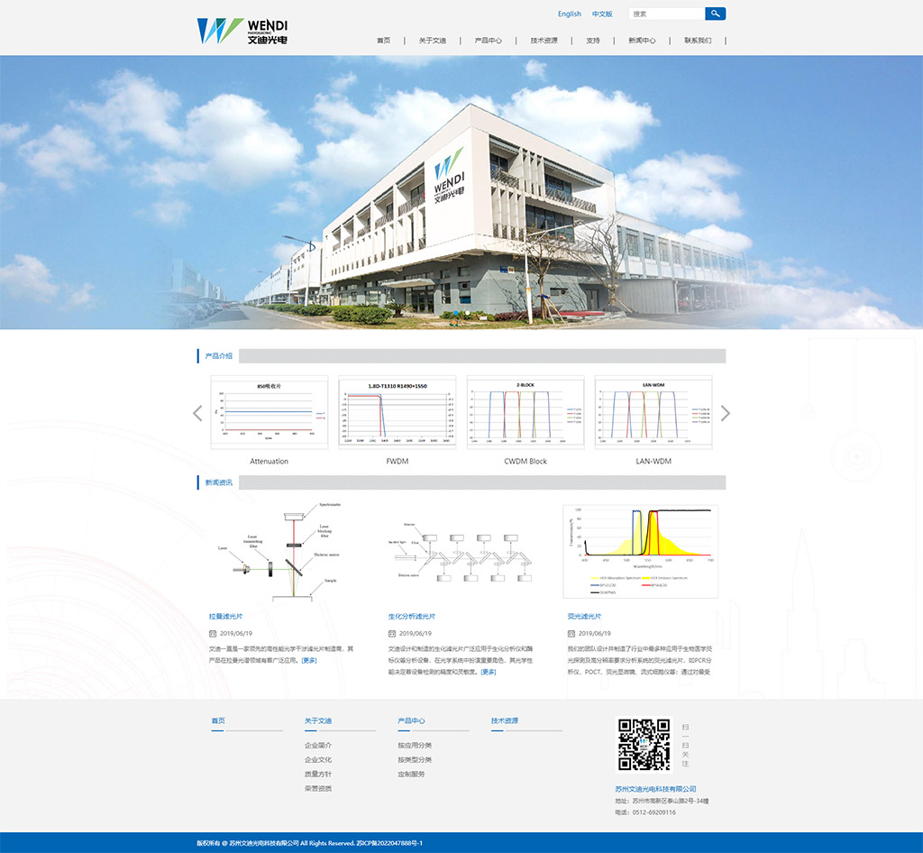 蘇州文迪光電科技有限公司于 2008 年 12月在蘇州新區(qū)注冊成立。公司主要產(chǎn)品為光通訊用濾光片、紅外鍍膜產(chǎn)品、生化分析濾光片、激光鍍膜、高端鏡頭,并提供相關(guān)的技術(shù)開發(fā)、技術(shù)轉(zhuǎn)讓等服務(wù)。