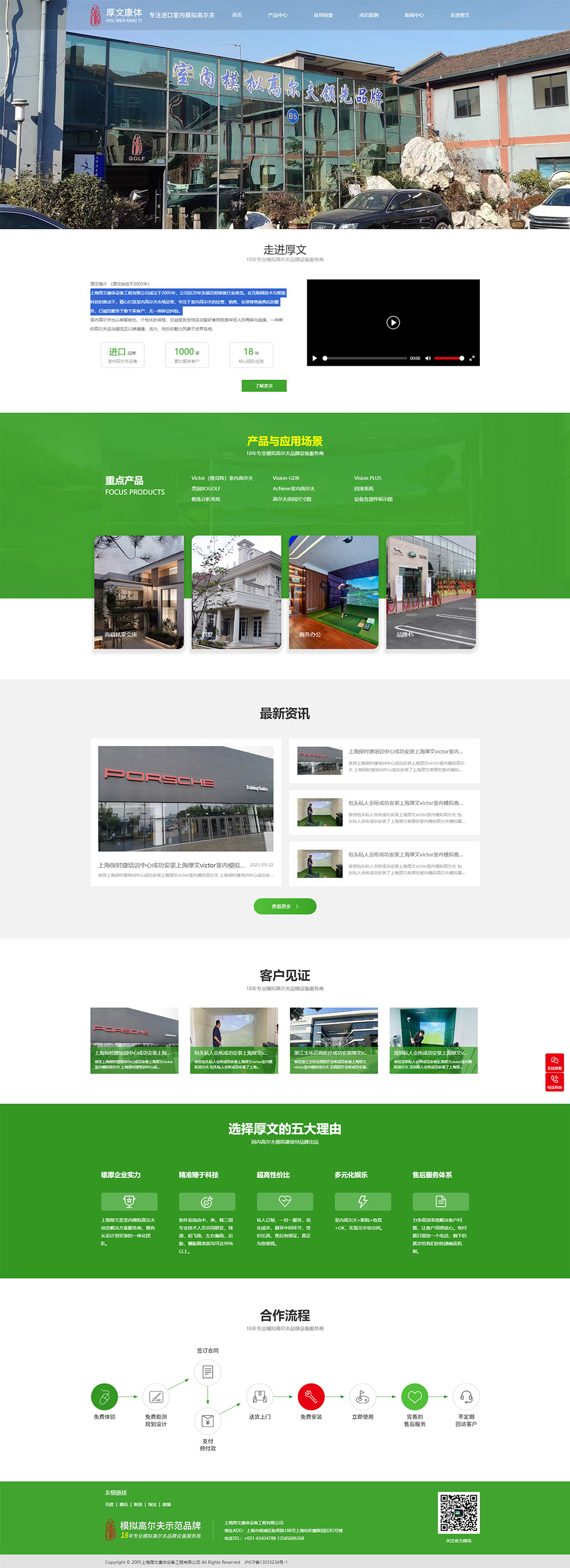 上海厚文康體設(shè)備工程有限公司成立于2005年,公司近20年發(fā)展歷程鑄就行業(yè)典范。在互聯(lián)網(wǎng)技術(shù)與智能科技的推動(dòng)下,精心打造室內(nèi)高爾夫市場(chǎng)運(yùn)營(yíng),專注于室內(nèi)高爾夫的經(jīng)營(yíng)、銷售、安裝等售前售后的服務(wù),已誠(chéng)信服務(wù)于數(shù)千家客戶,無一例訴訟糾紛。